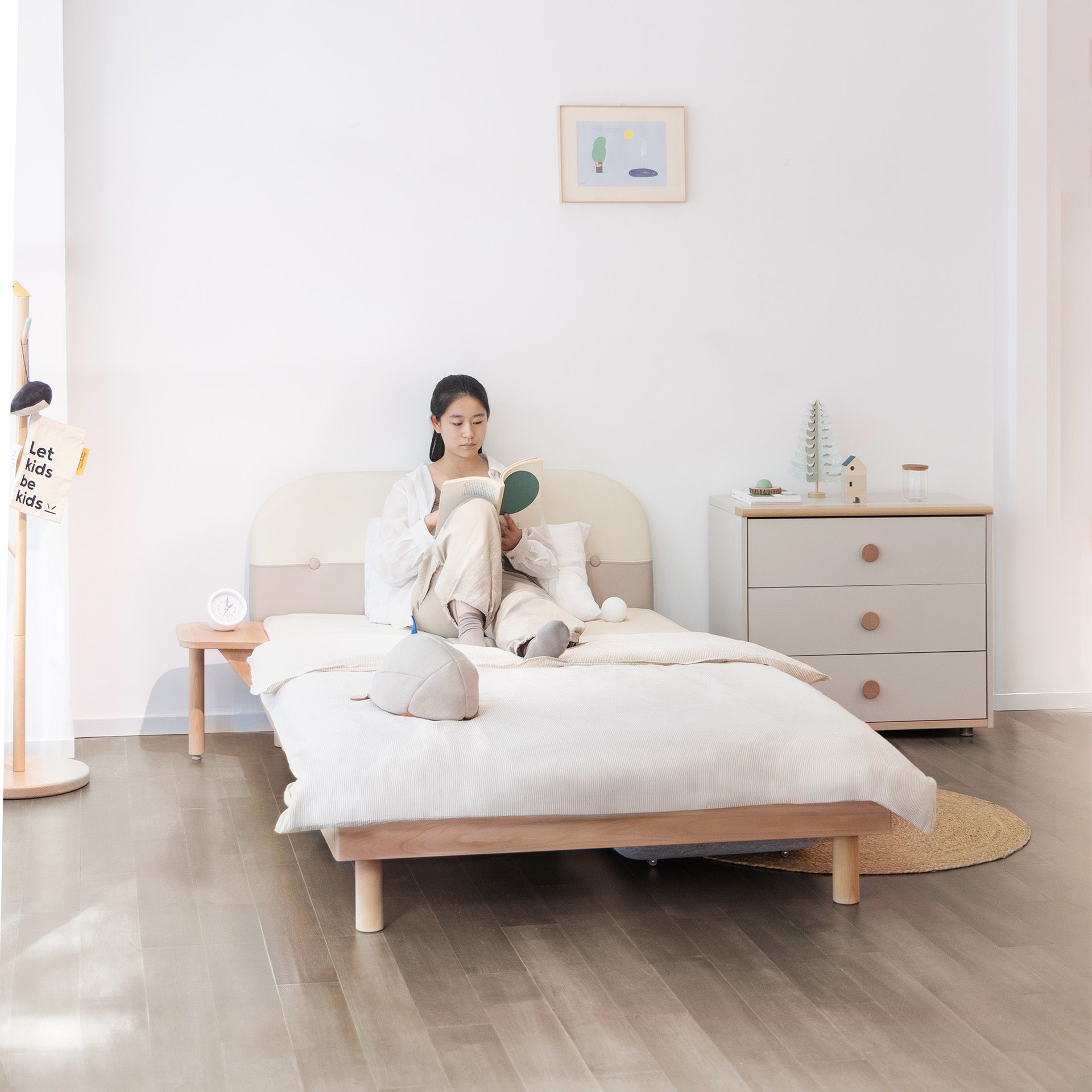 Looking for the modular bed system? Our most flexible Montessori range elevates from floor to regular bed height, with interchangeable headboards and storage accessories.