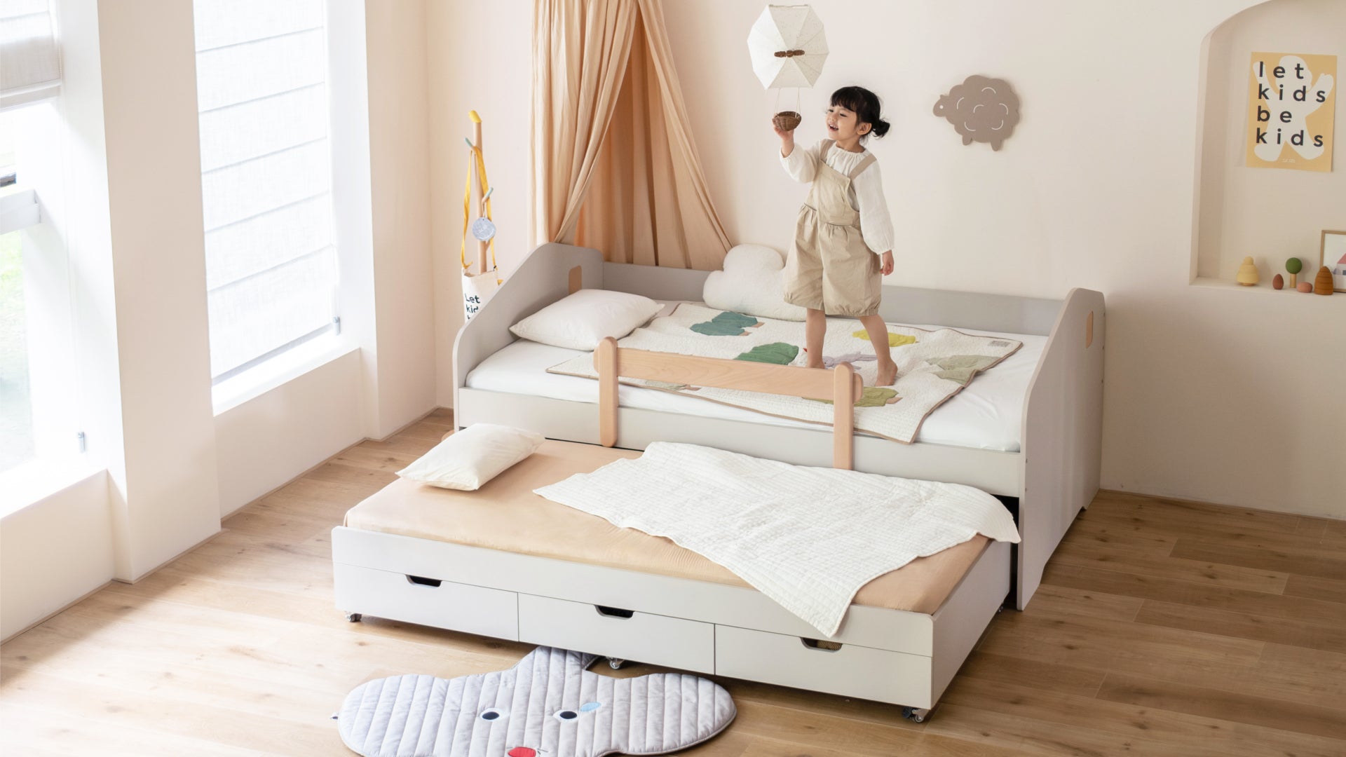 Need extra space for storage or sleepovers? A cosy house frame design with integrated storage drawers or a pull-out trundle bed set makes sleepovers a breeze.