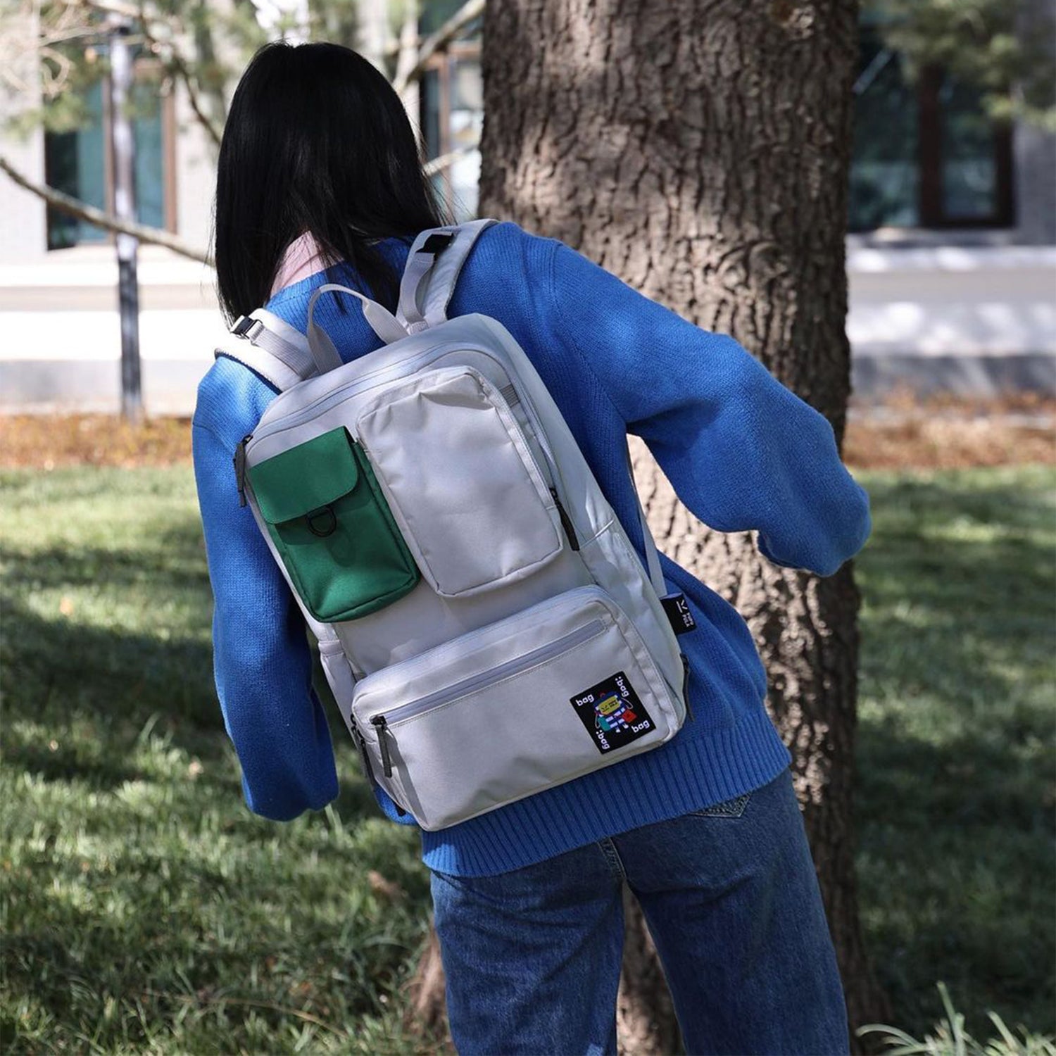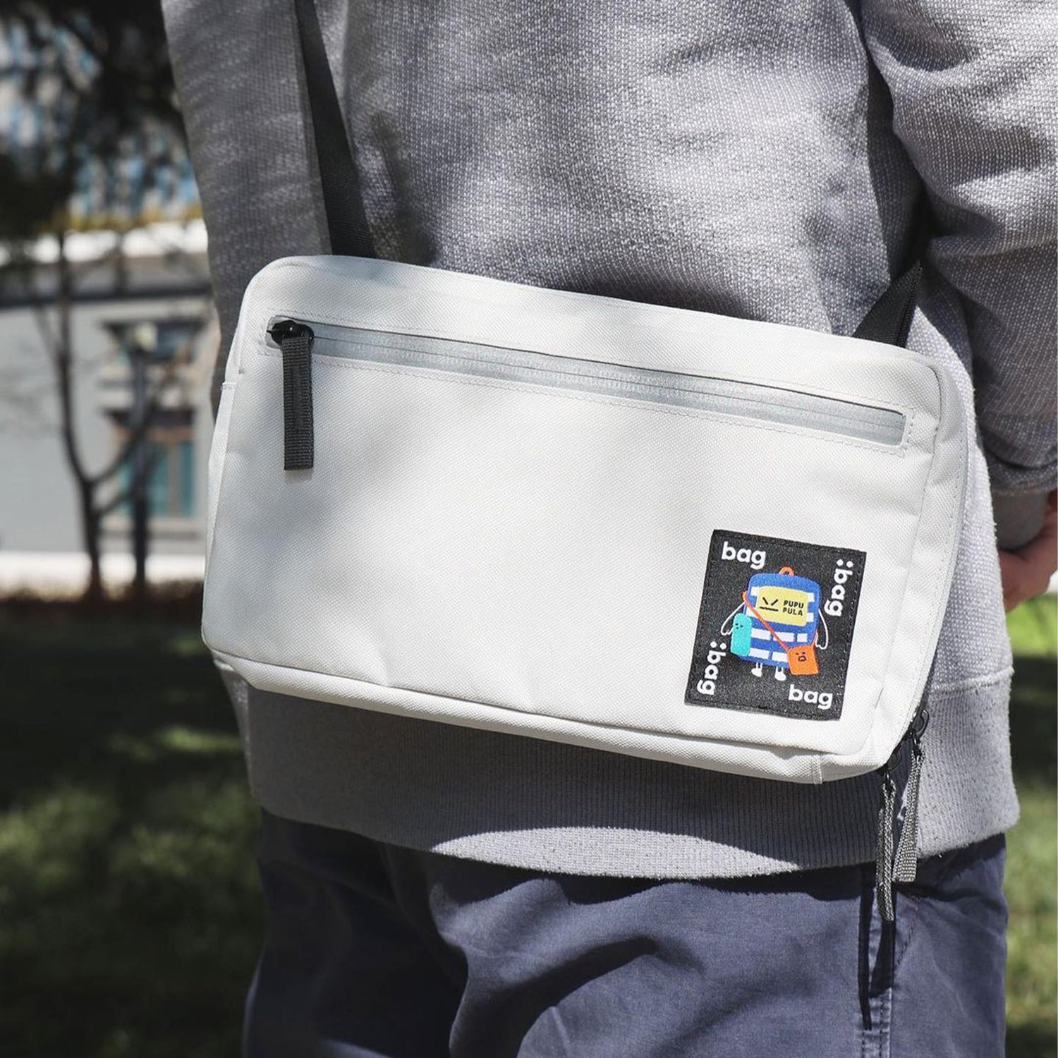 A velvet pocket inside protects valuables from scratches, while a playful woven label adds a unique touch of style. The external small horizontal bag features a reflective strip zipper, ideal for enhanced visibility during cycling, blending function and safety seamlessly.