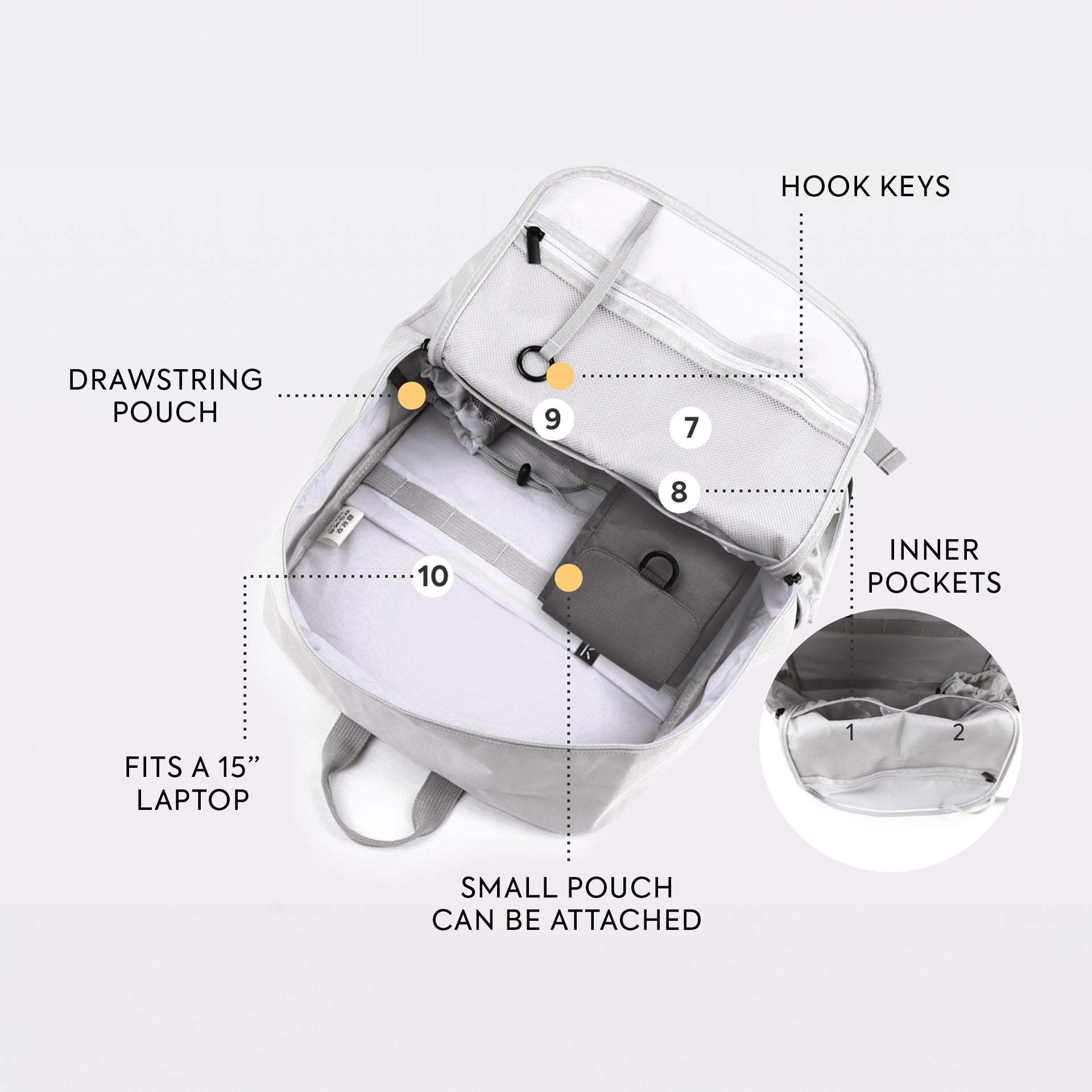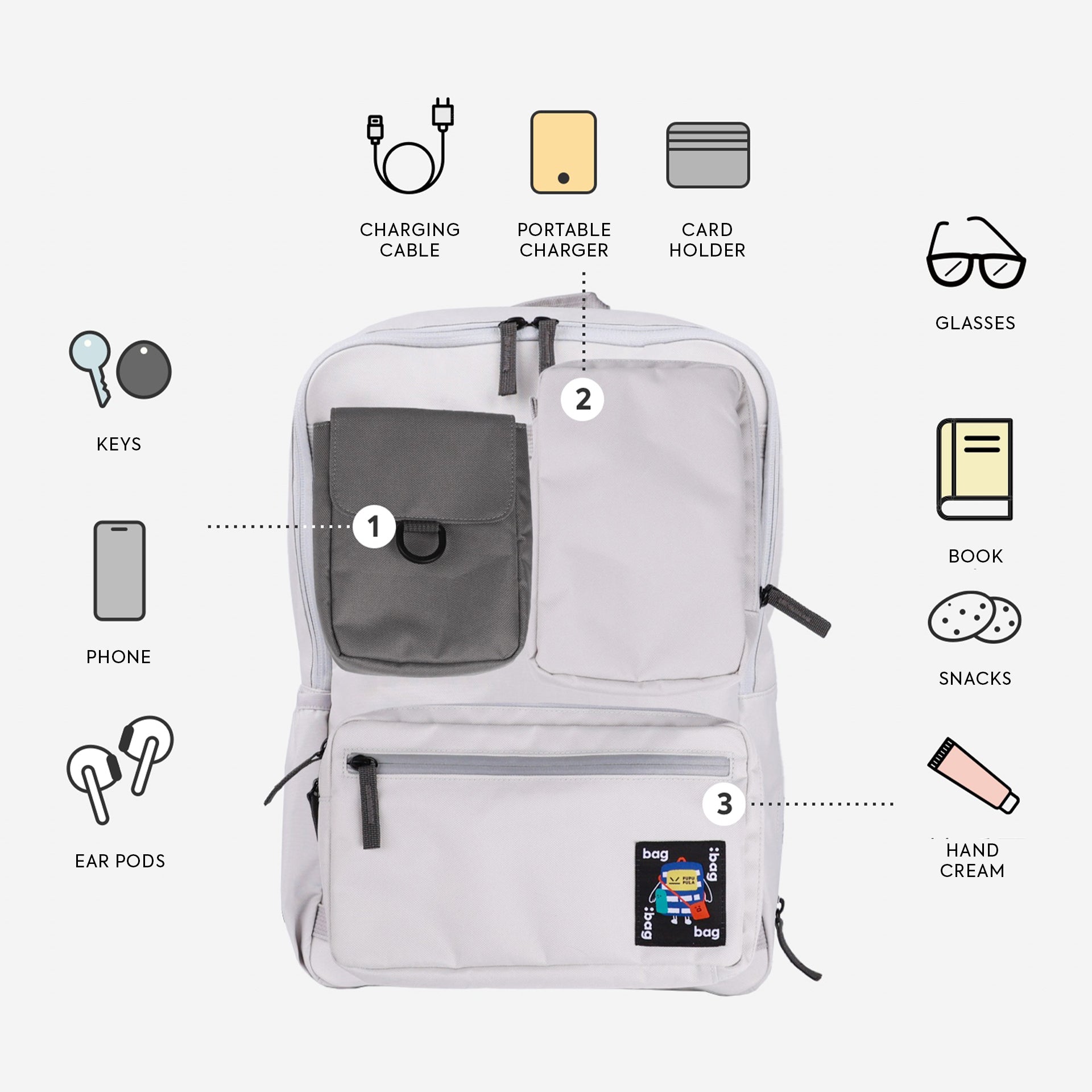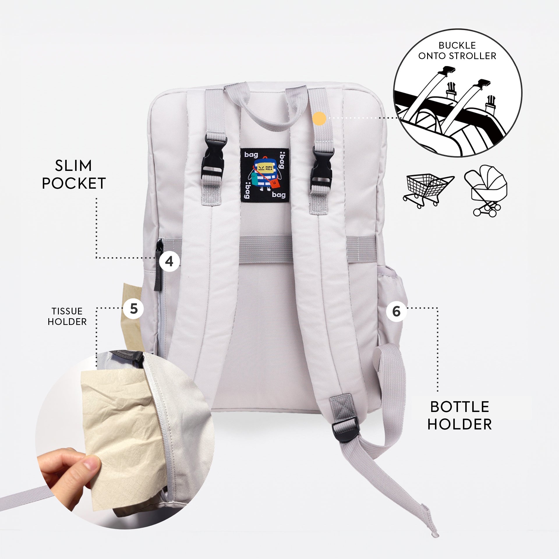 This bag has a place for everything. The spacious 15L main compartment fits a 15" laptop, and multiple external pockets keep your phone, keys, and cards organised. With a dedicated tissue holder and bottle holder, all your essentials are neat and easy to grab.
