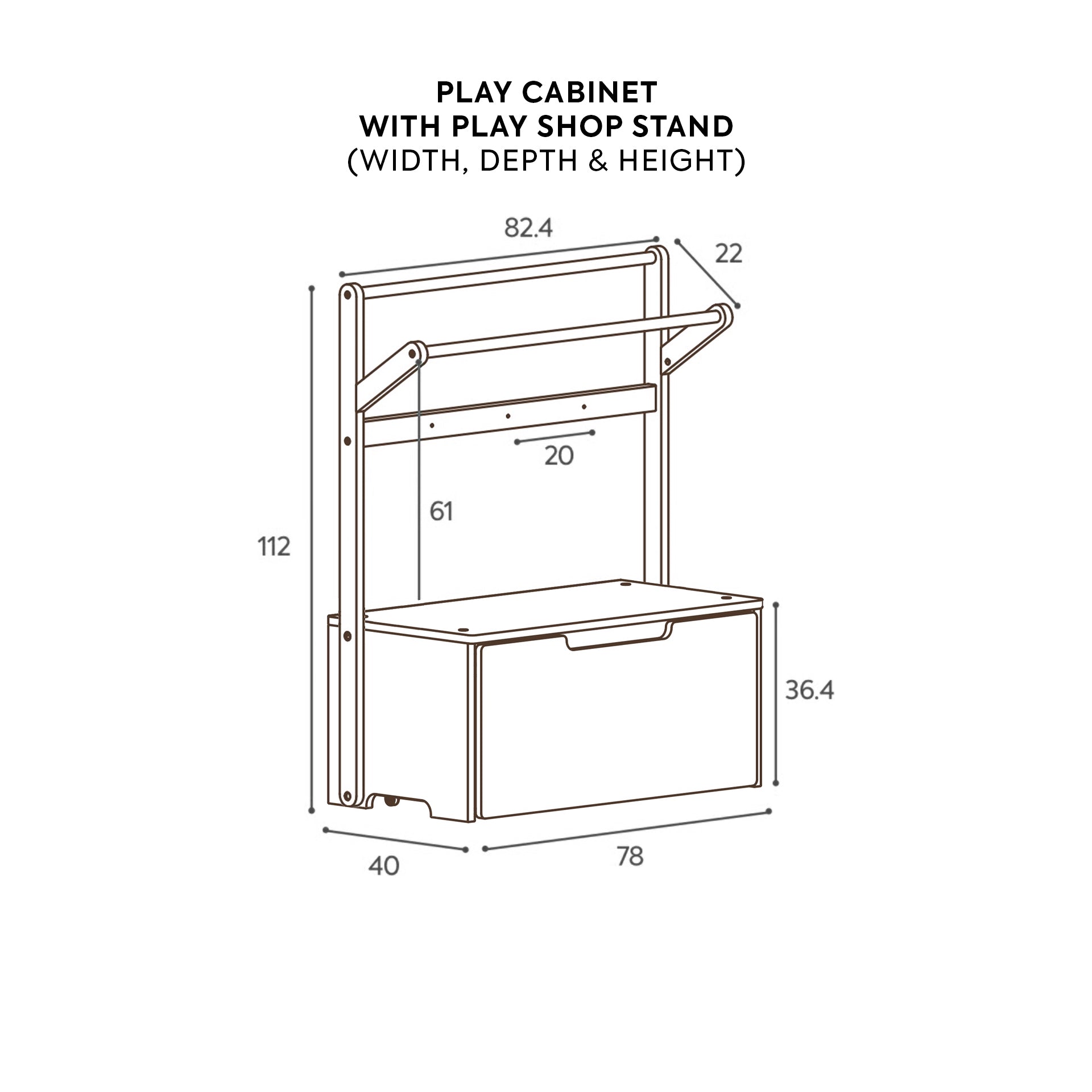 - Play Cabinet with Play Shop Stand: 82.4W × 40D × 112H