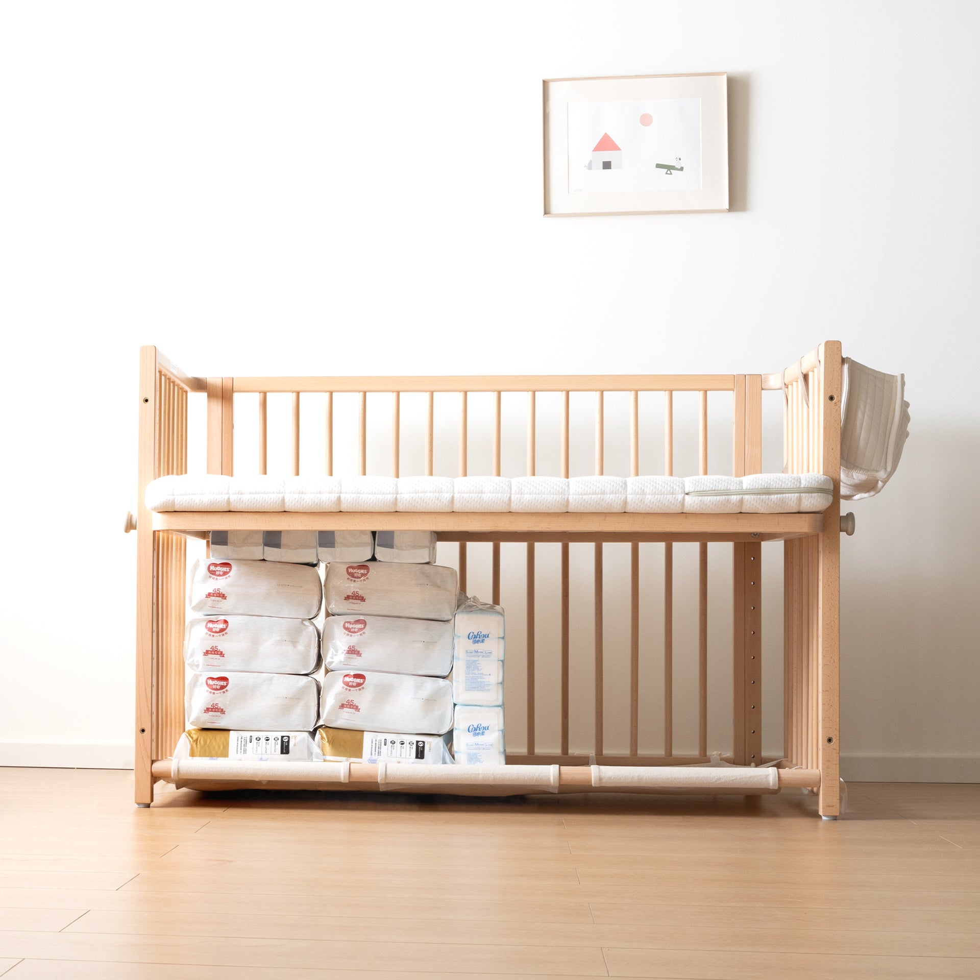 Need somewhere to hide those massive nappy boxes? This shelf turns the space under your cot into powerful, hidden storage. It's super-capacity and perfect for holding all your bulky supplies, instantly freeing up your wardrobe and drawers.