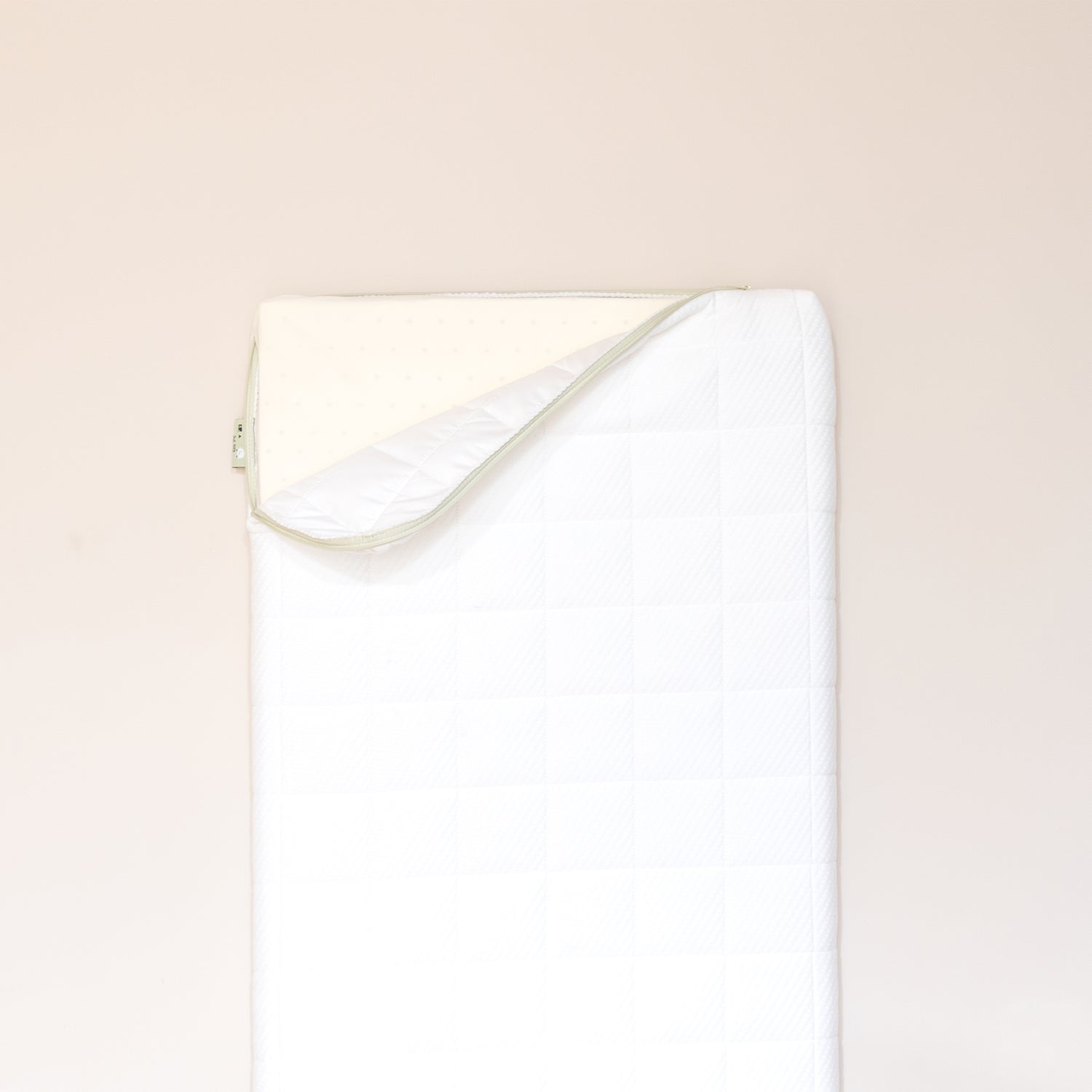 The mattress core combines the high resilience of natural latex with the strong, formaldehyde-free support of eco-friendly coconut coir. This combination, along with a breathable inner cover, ensures excellent airflow and helps protect your baby's developing spine with evenly distributed weight.