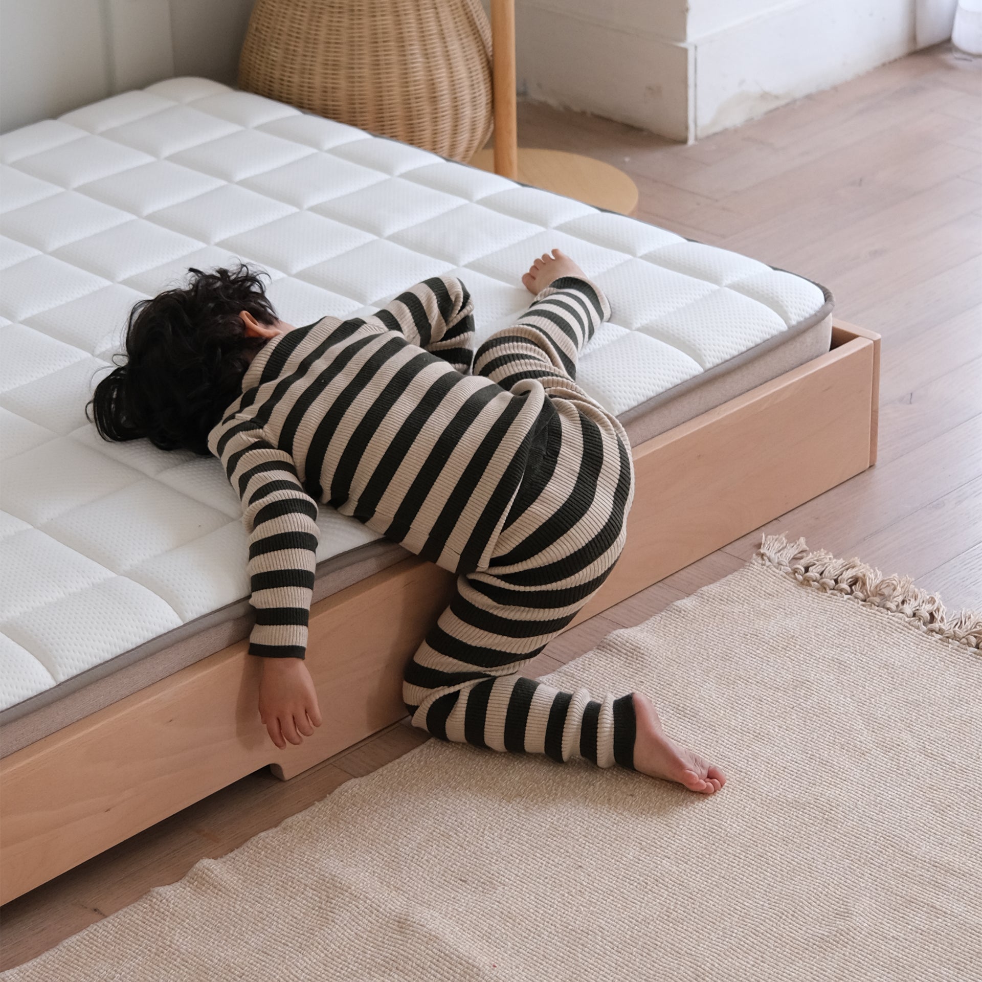 PUPUPULA mattresses features a dual-sided design to accommodate various sleep preferences and support your child's spinal development.