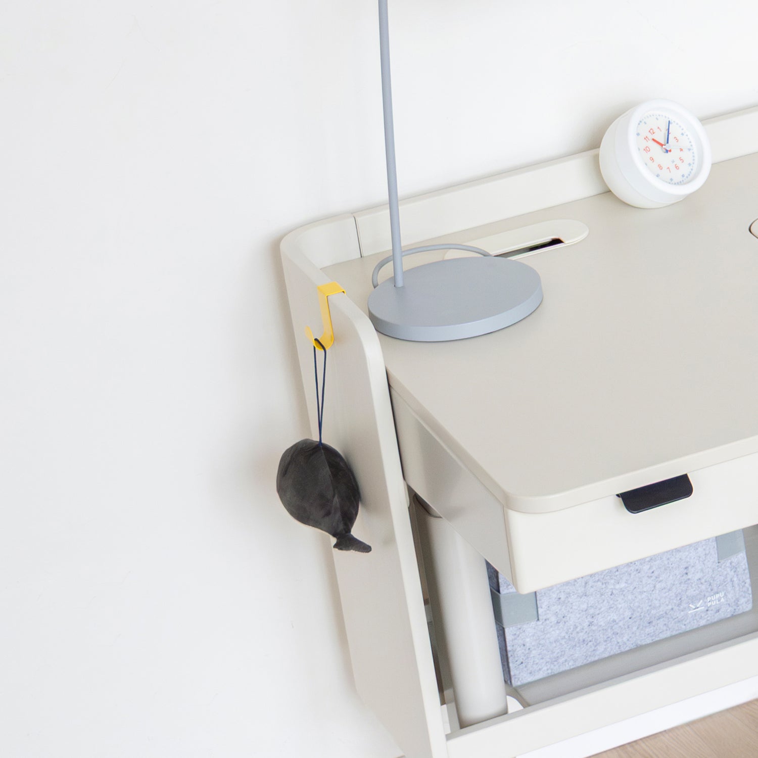 A simple hook can make a big difference. This handy hook gives your child a designated spot to hang their school bag or headphones. It's a small but effective way to keep items off the floor and ensure the area around the desk stays neat and tidy.