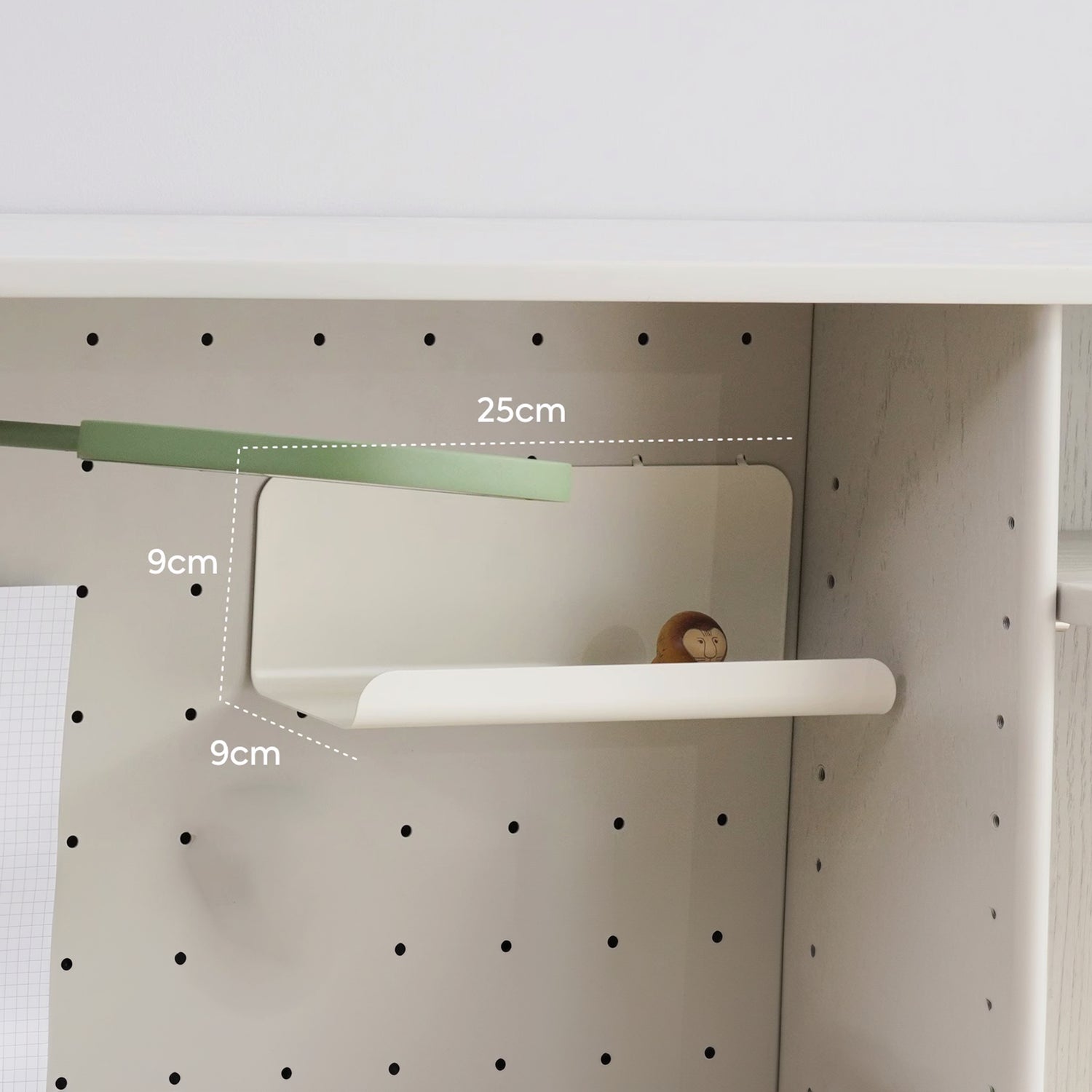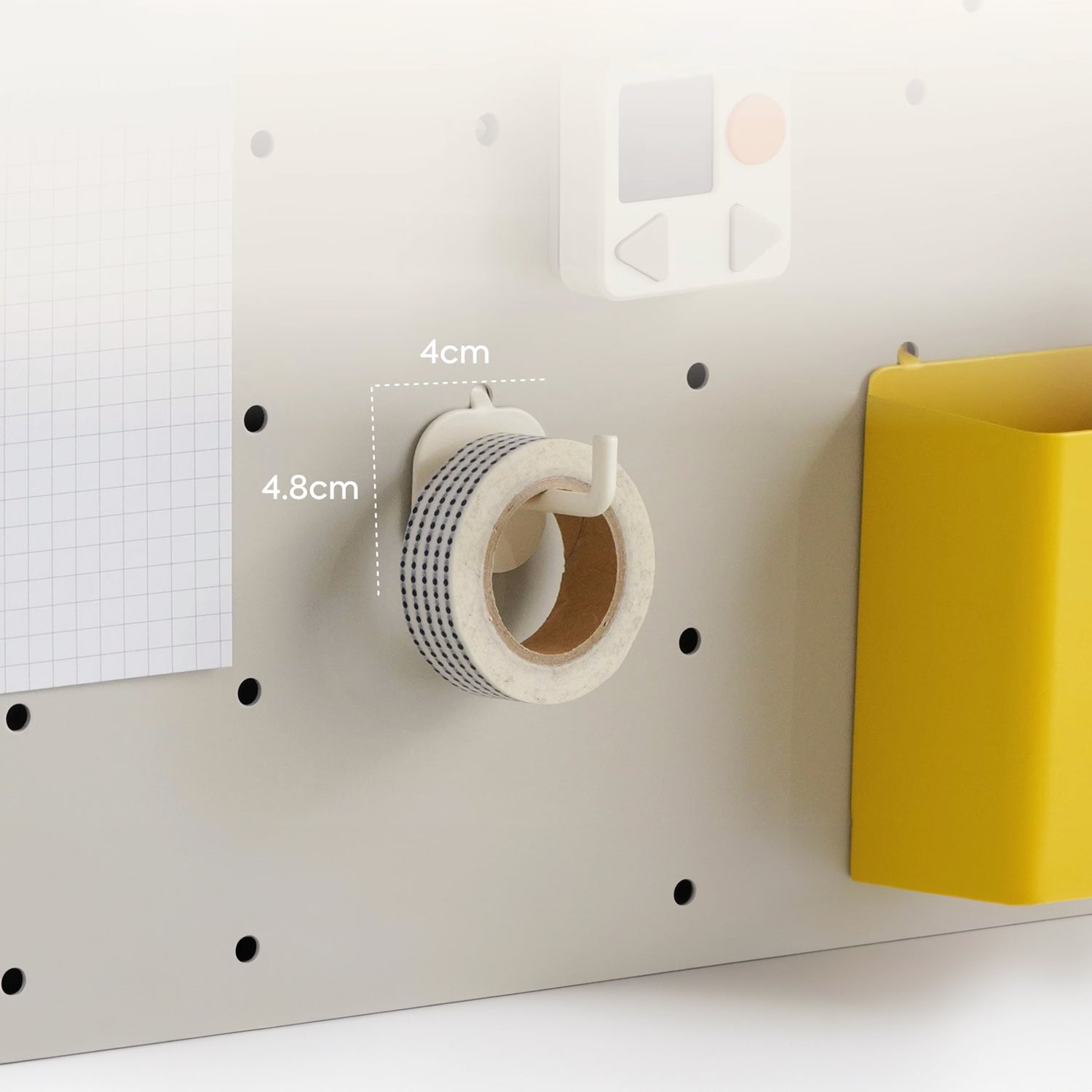 This hook provides convenient hanging storage for frequently used items like headphones or a school bag. It easily attaches to the storage board, keeping essential gadgets within arm's reach and maintaining a clutter-free desktop for study or play.